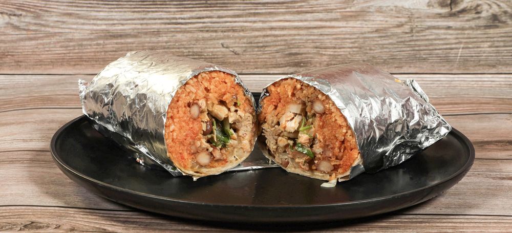 Large flour tortilla filled with your choice of meat, rice, whole pinto beans, onion, cilantro, and salsa.